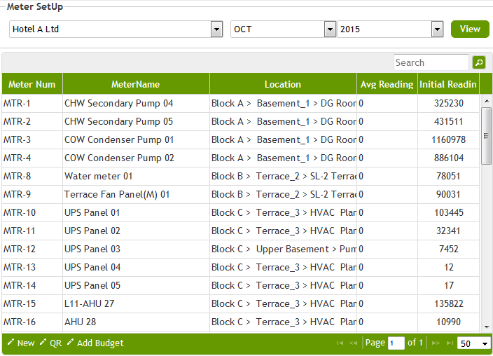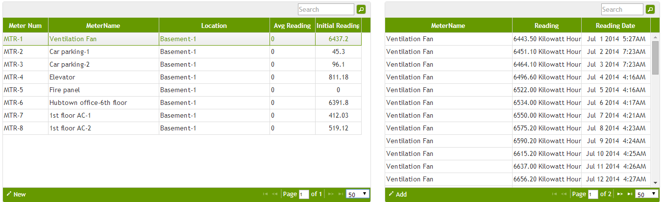 6. Click on Add to enter the meter readings of each meter setup and fill in the form.