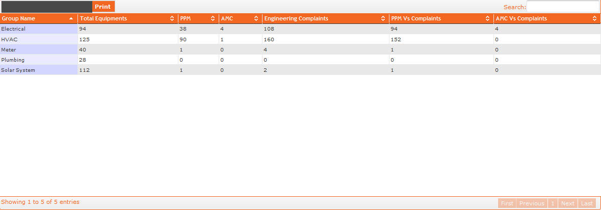 1. To view Equipment Schedule Vs Complaints, Select Equipment Schedule Vs Complaints from the options.